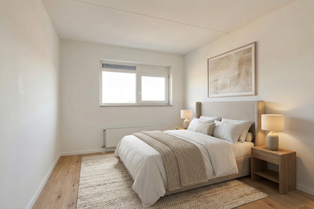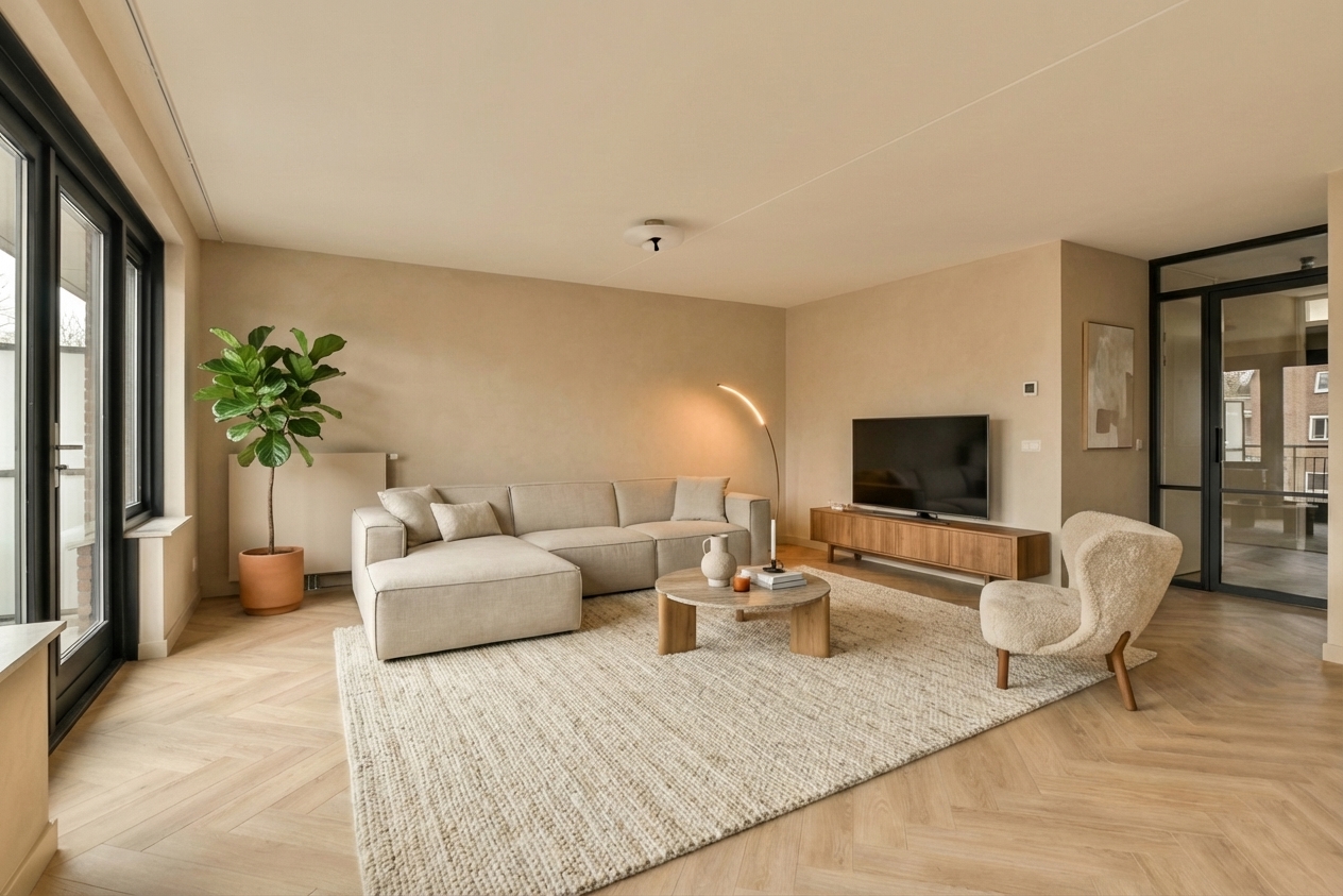 Upload een foto van een lege of gedateerde woning. Onze AI ruimt op, moderniseert en richt in. Binnen een minuut heb je verkoopklare beelden voor Funda — zonder stager, zonder fotograaf, zonder wachttijd.